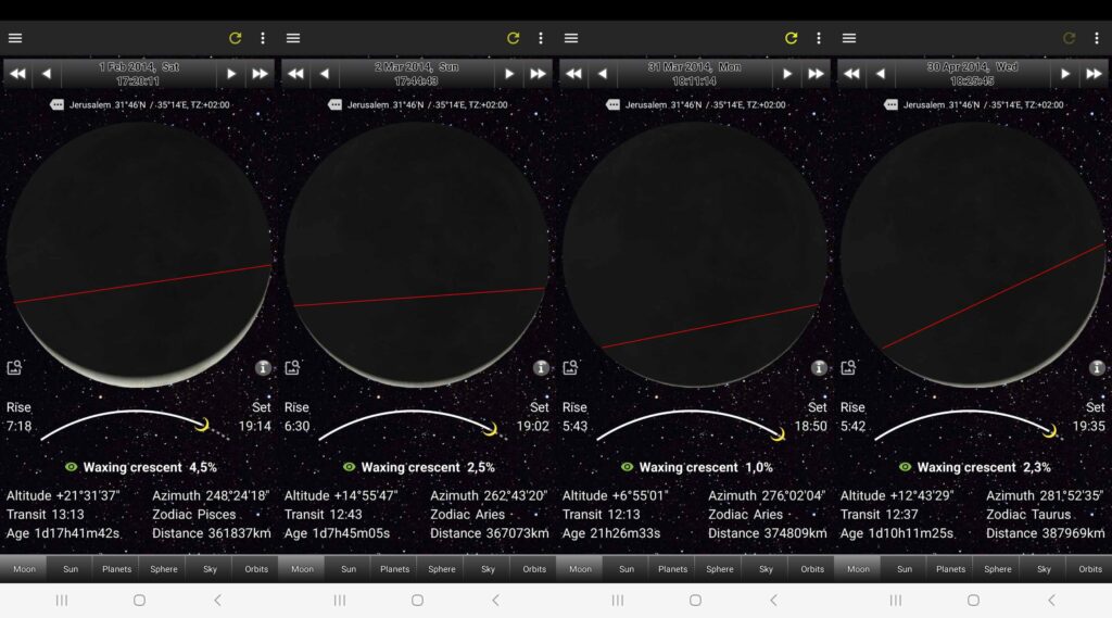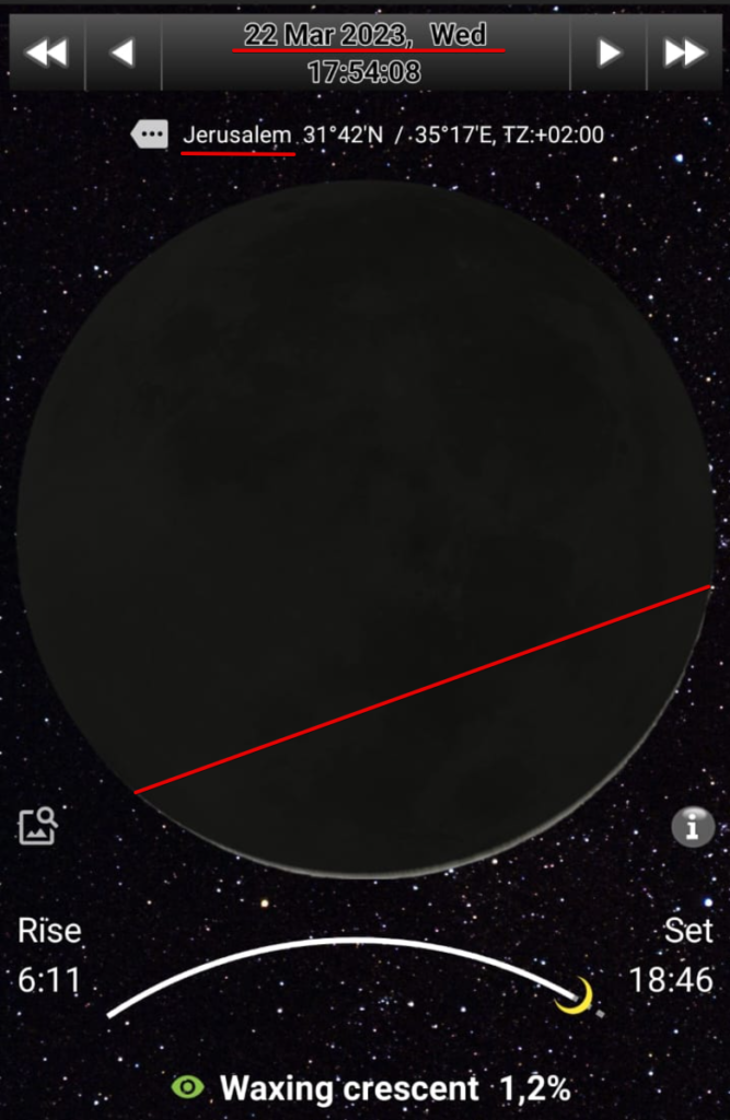 It is argued that Yahuah indicated a special-looking moon to Moseh. Something that can easily be recognized as that particular new moon. So, the argument goes that the ‘flat bowl moon’ is such a moon. The two horns are equal in height to each other, the horn on the left to the horn on the right. That is the rim of the bowl and the bowl forming perfectly below.