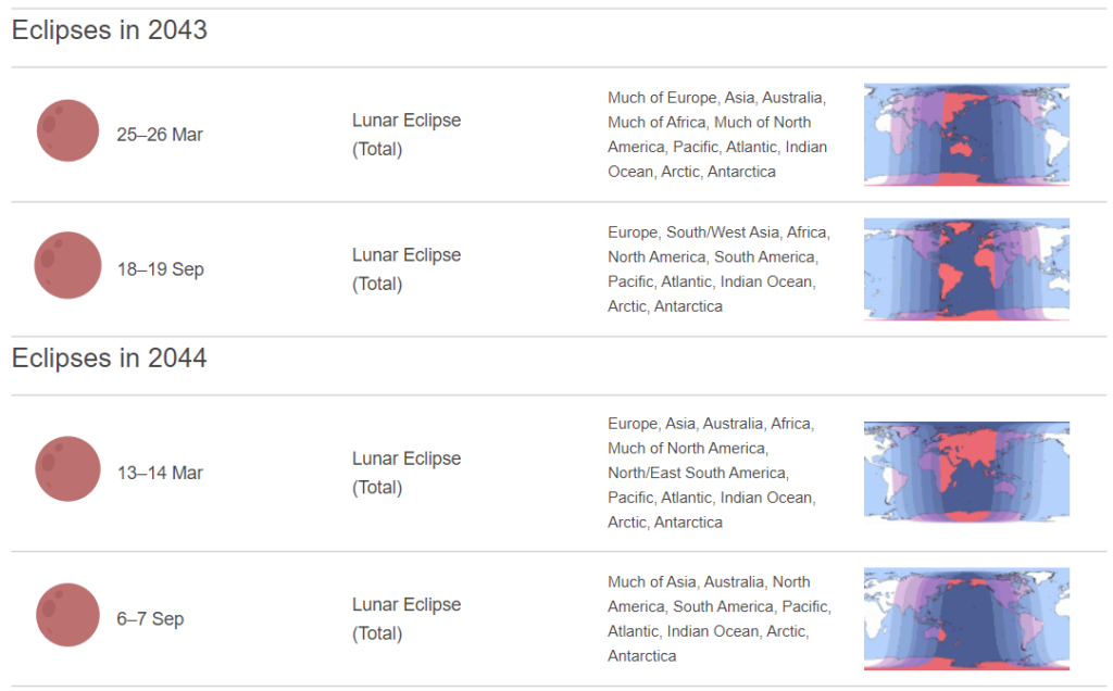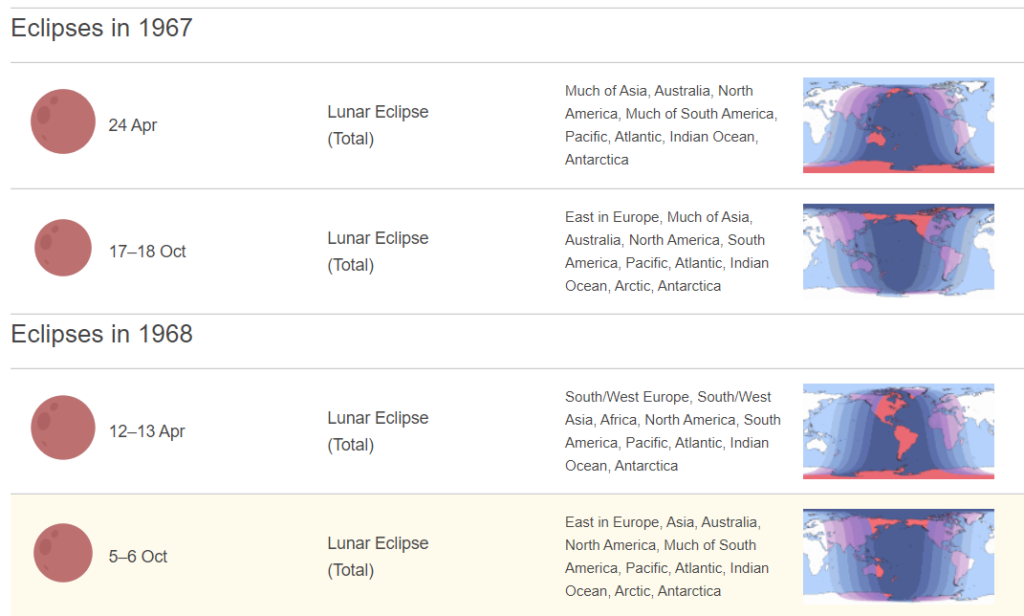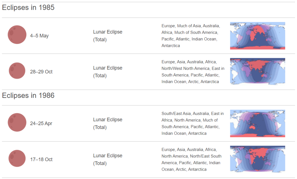 In the period under review, there is only one year where three total lunar eclipses occurred in one year. That was in 1982.